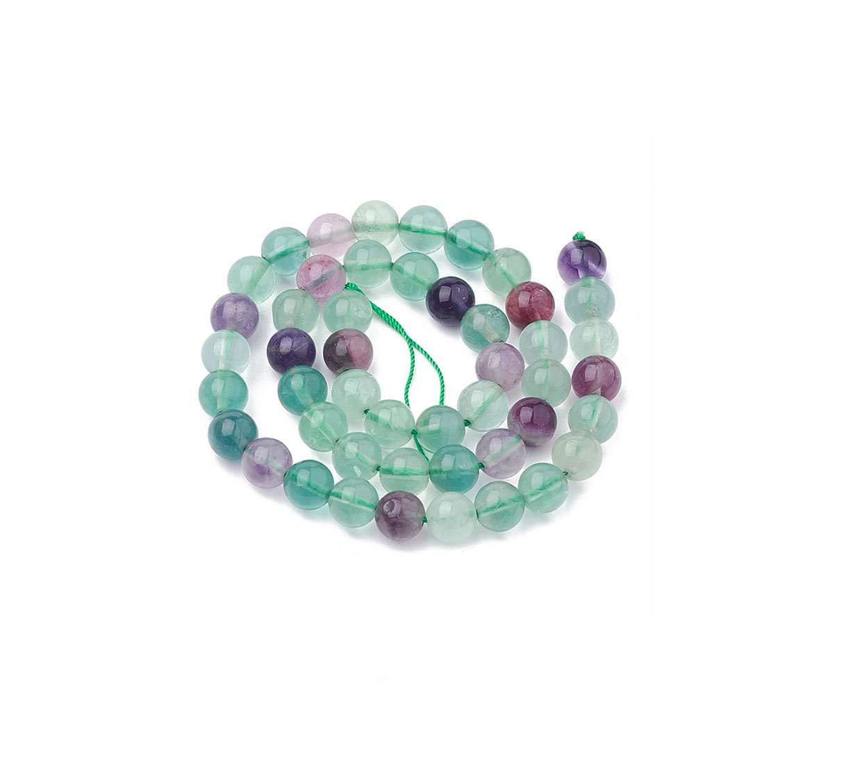 Natural Fluorite – 10mm – Round Beads – Rainbow Green & Purple Mix – Polished Gemstones