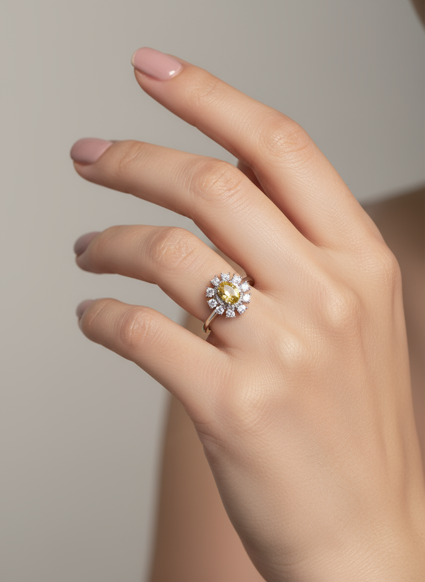 ✨ Make a statement with this dazzling cocktail ring, crafted from 925 sterling silver with rhodium plating. At its center shines a brilliant 1.05ct natural citrine, surrounded by a sparkling halo of CZ stones that capture the light from every angle. Known as the stone of joy and abundance, citrine adds both elegance and uplifting energy to your look — perfect for evening wear or adding bold charm to your everyday style.